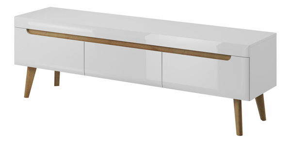 MutasdModern TV asztal / szekrény, mely elegendő tárolóhelyet nyújt három fiókjának köszönhetően.