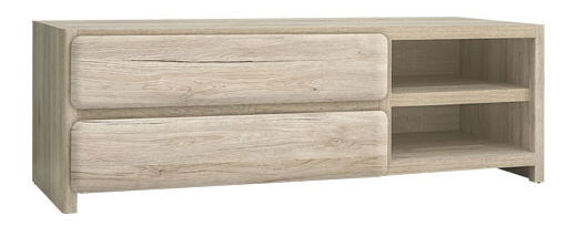 Eredeti TV asztal, melyet az érdekes megjelenésén kívül, a praktikusságának köszönhetően is értékelni fog. A TV asztal bal oldalán két széles fiók található, melyekben elhelyzeheti kedvenc DVD-it, könyveit és más kiegészítőket. A jobb oldalán két nyitott polc van, ahová az AV berendezést helyezheti el. A fiókok lekerekített sarkakkal vannak ellátva és nem rendelkeznek fogantyúkkal.