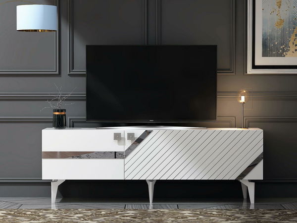 TV asztal/szekrény Tabivo (fehér + ezüst)