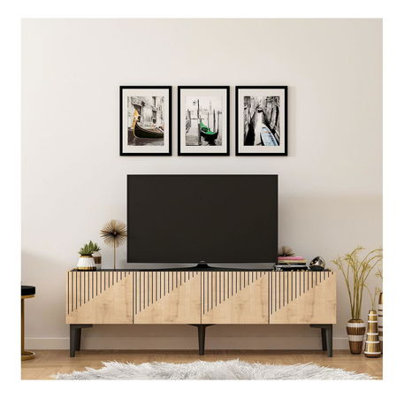 TV asztal/szekrény Tomune 4 (zafír tölgy + fekete márvány)