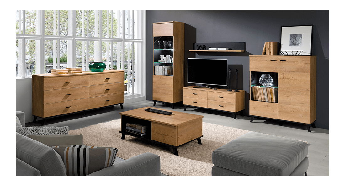 TV asztal/szekrény typ 7 Siralla (lefkas tölgy + fekete)