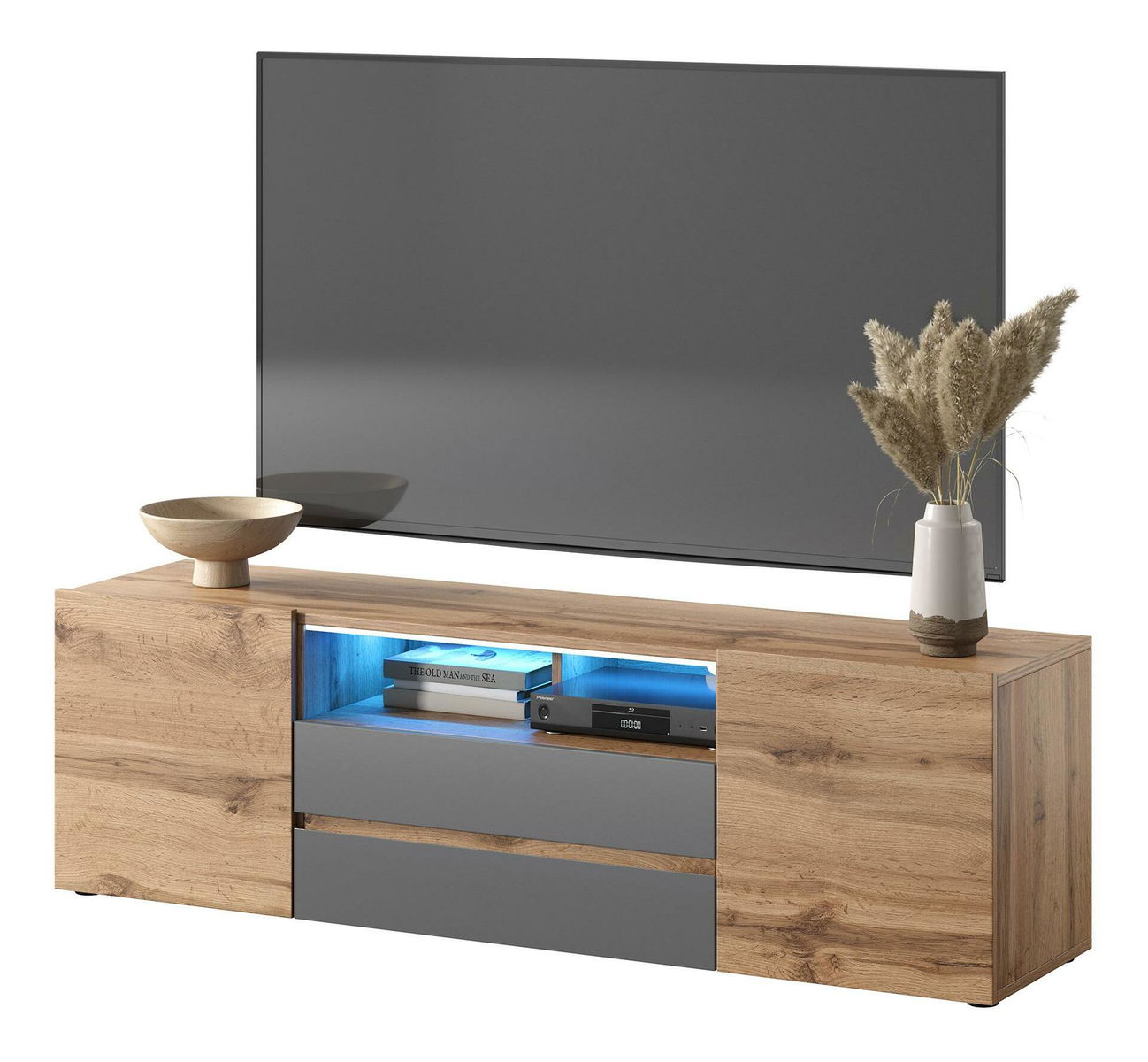 Tv szekrény/asztal Boss (világítással) (wotan tölgy + szürke)