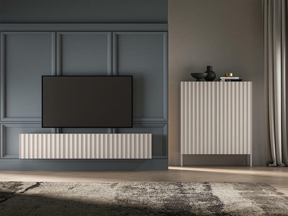 Egyedi, modern és egyben funkcionális bútort keres otthonába? Ez a kollekció minden elvárásának megfelel. Az egyedi dizájnú fali TV-szekrény tökéletesen illeszkedik modern és minimalista enteriőrökbe. A kasmír színe finom bájt kölcsönöz a szekrénynek, amely a legtöbb elrendezéshez tökéletesen illik. A teljes kollekciót a kifinomult részletek jellemzik, a barázdált előlapok formájában, amelyek minden helyiségnek egyedi megjelenést kölcsönöznek. A funkcionalitást szem előtt tartva tervezték, és három tágas polccal rendelkezik, ahol könnyedén elhelyezhet különféle tárgyakat az igényeinek megfelelően. A kollekció nemcsak praktikus tárolási megoldás, hanem egy olyan designelem is, amely kiemeli minden helyiség egyedi stílusát. Ne várjon, és vigyen egyedi karaktert otthonába még ma! Termékadatok: kasmír U12168VV - PFL 16 mm-es laminált lapból készült korpusz, NL7393 CASHMERE SERICA 18 mm-es MDF lapból készült előlapok, lágyan záródó funkciójú zsanérok, belül ívelt lábak! Váz színe, a felső rész 7 mm-rel kiálló előlapok, a szélek melaninnal védve a mechanikai sérülésektől, a hátlap fehér HDF-ből készült, szín: kasmír.