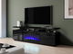 TV szekrény kandallóval Anaceta (fekete + fényes fekete)