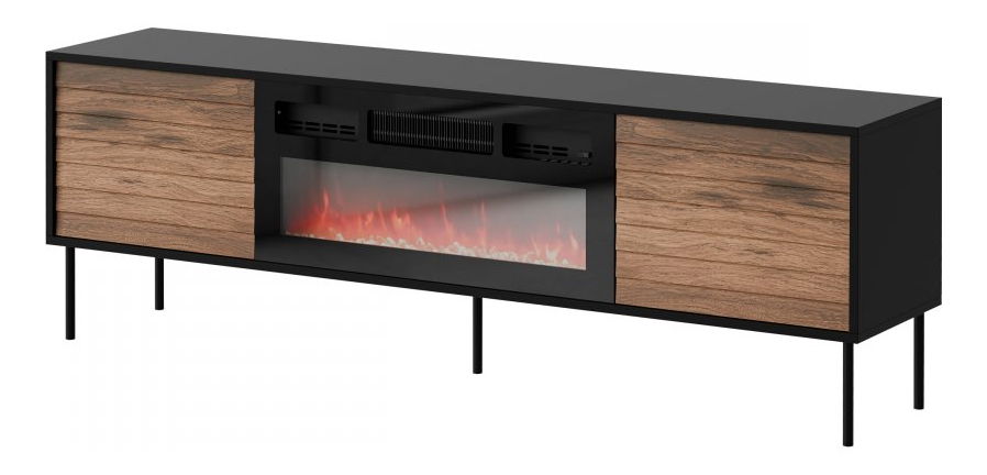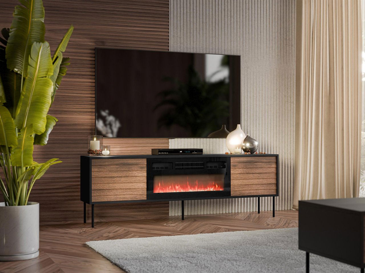 TV szekrény kandallóval Hermano 180 (fekete + warnia dió)