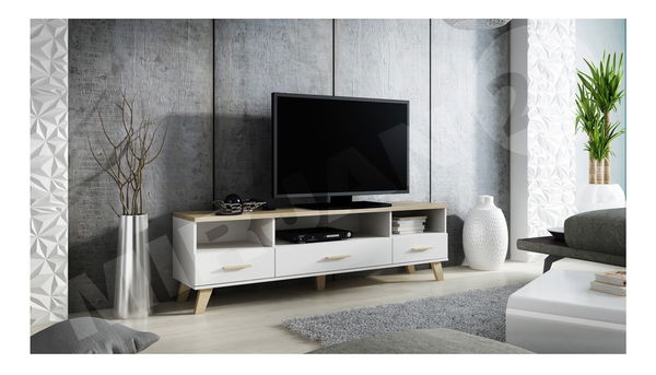 TV szekrény Sanna 180 3S3K RTV (ragyogó matt fehér + sonoma tölgy) *bazár