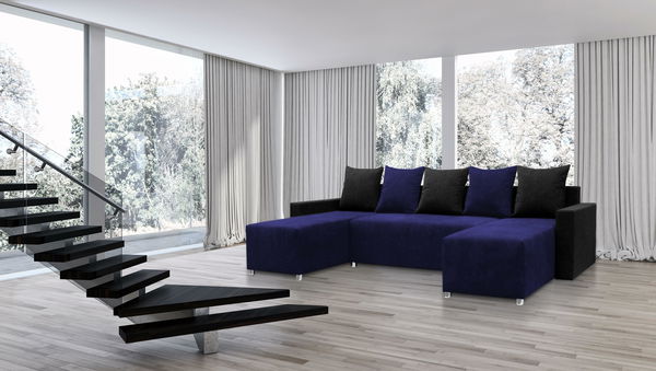 U-alakú sarok kanapé Brigid U háttámlával (fekete lila + párnák)