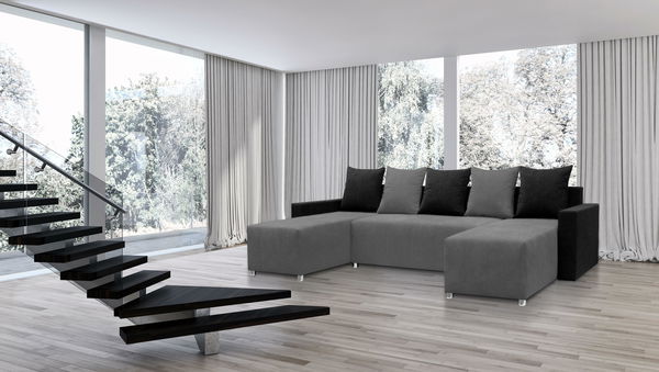 U-alakú sarok kanapé Brigid U háttámlával (fekete szürke + párnák)