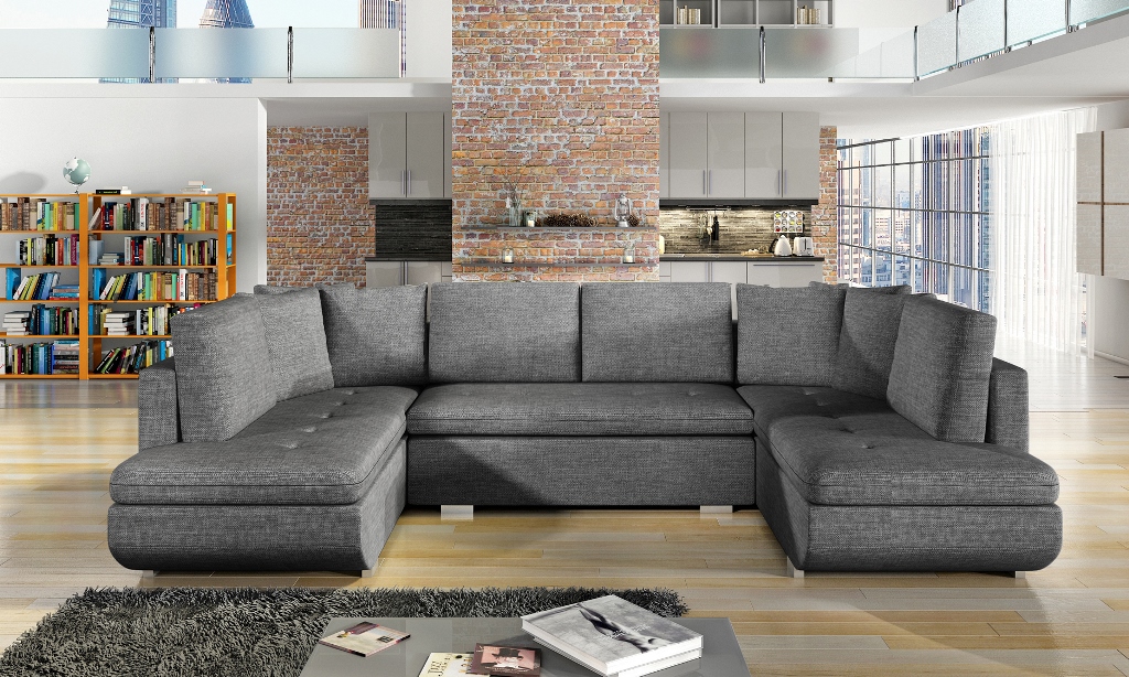 A nappalit egy nagy, kényelmes és tágas kanapé uralja. Ilyen az Arleen U sorozatból az U alakú kanapé, melyet többféle színváltozatban kínálunk. A kanapénban sok tárolóhely található és kialakítása helyet kínál az alkalmi alváshoz.