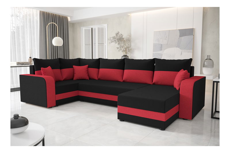 U alakú sarokkanapé Harmony Long (fekete + piros) (B)