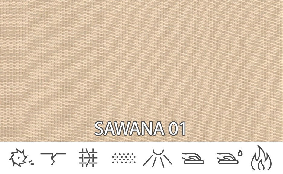 A Sawana fedőszövet puha, kellemes tapintású kötött anyag, amely könnyen karbantartható/tisztítható, puha és kellemes kötési textúrájával. Szintetikus szálakból készült, amelyek ellenállnak a fénynek - nem fakulnak ki. Hálózattal van megerősítve, amely szakadáskor növeli az erejét. Ne tegye ki az anyagot magas hőmérsékletnek – ne vasaljon, ne mosson nedvesen, és ne használjon fehérítőszert. Ápolása és tisztítása csak kárpitozott bútorok speciális eszközeivel.