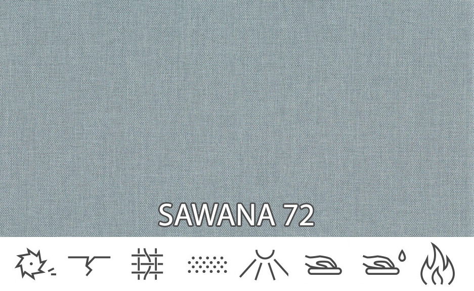 A Sawana fedőszövet puha, kellemes tapintású kötött anyag, amely könnyen karbantartható/tisztítható, puha és kellemes kötési textúrájával. Szintetikus szálakból készült, amelyek ellenállnak a fénynek - nem fakulnak ki. Hálózattal van megerősítve, amely szakadáskor növeli az erejét. Ne tegye ki az anyagot magas hőmérsékletnek – ne vasaljon, ne mosson nedvesen, és ne használjon fehérítőszert. Ápolása és tisztítása csak kárpitozott bútorok speciális eszközeivel.