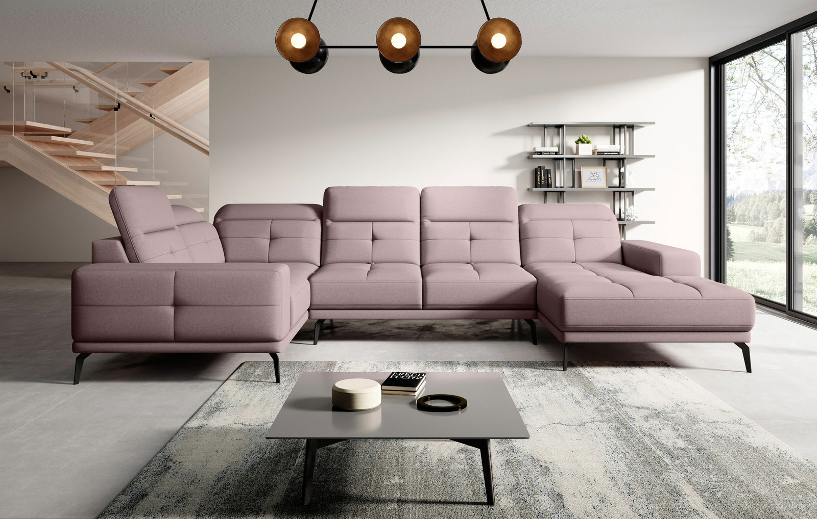 U alakú sarokkanapé Nicolette (világos rózsaszín) (B)