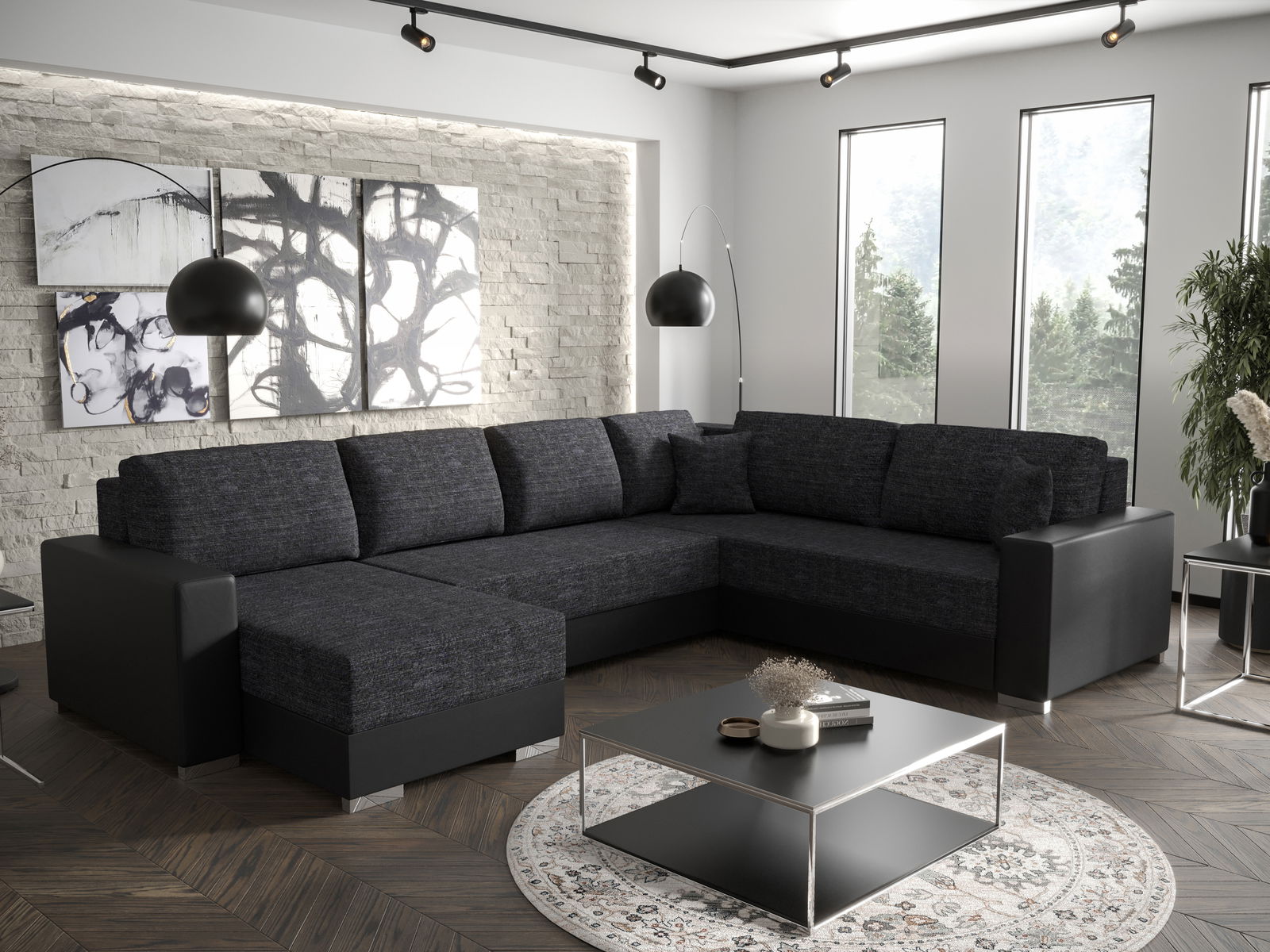U alakú sarokkanapé Pearle 3 (sötétszürke + fekete) (J)