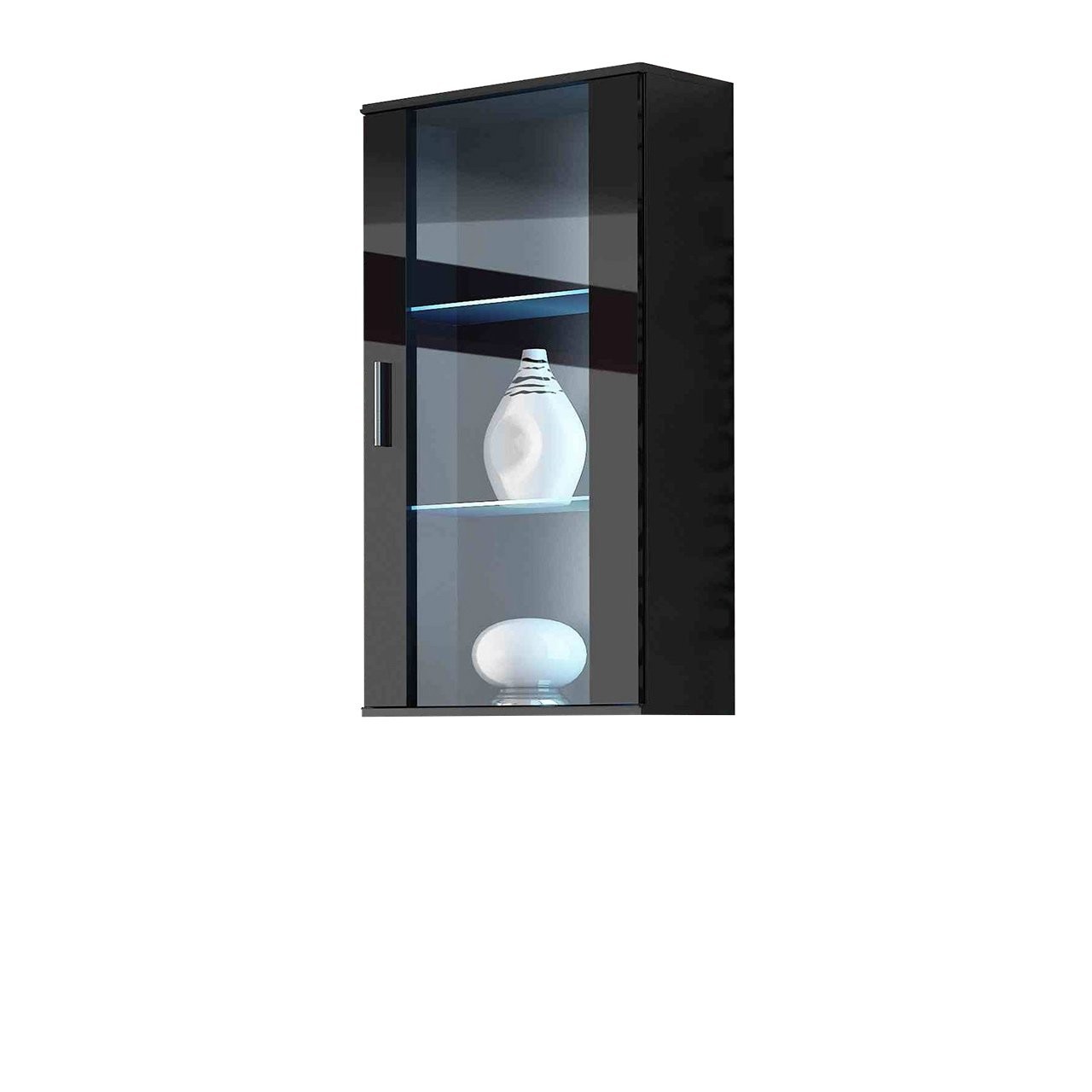 Vitrin Belario B2 (fekete + fényes fekete) (fehér LED világítás)