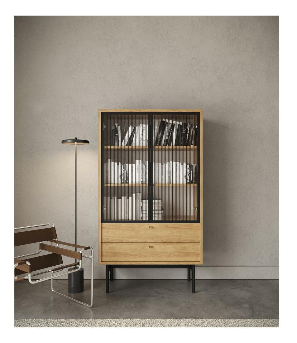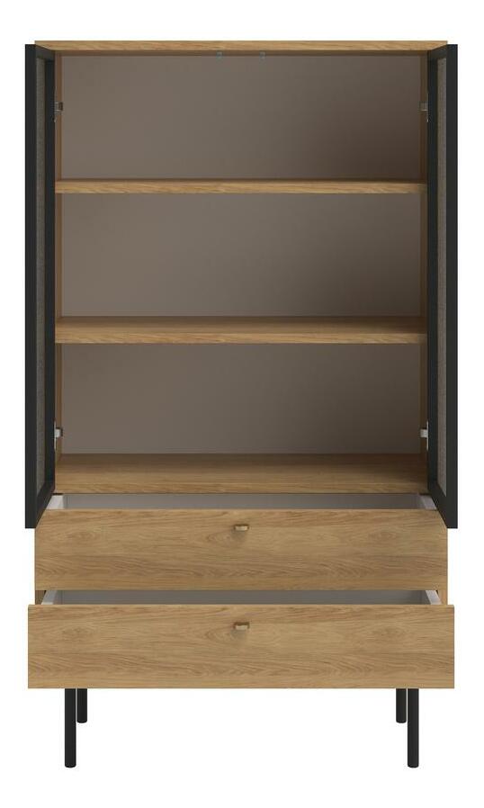 MutasdSzeretné megváltoztatni otthona külsejét? Kínálatunkkal egyedi elrendezést hozhat létre, amely kiemeli a finomságot és eleganciát. A vitrin meleg színű, modern belső térbe illik, laminált forgácslapból készült, így tartós és megbízható. Fekete acél kerete ipari bájt ad, míg az arany fogantyúk praktikusak és eleganciát kölcsönöznek. Két fiókjával és polcával ideális tárolást biztosít dísztárgyaknak, emlékeknek vagy könyveknek, üveges ajtaján pedig drágázott díszítések találhatók. A természetes hikori és az arany fogantyúk finom karaktert adnak az enteriőrnek. Ez a bútordarab nemcsak praktikus tárolási megoldás, hanem dizájn elem is, amely kiemeli a helyiség egyedi stílusát. Válassza a tökéletességet otthonába még ma! Termék részletei: Természetes hikori H3730 ST10 laminált lapból készült test és frontok, fekete porfestett acél keret, amely megkönnyíti a takarítást, polcméret: 28,5 cm magasság x 37 cm mélység, arany színű, csiszolt acél fogantyúk.
