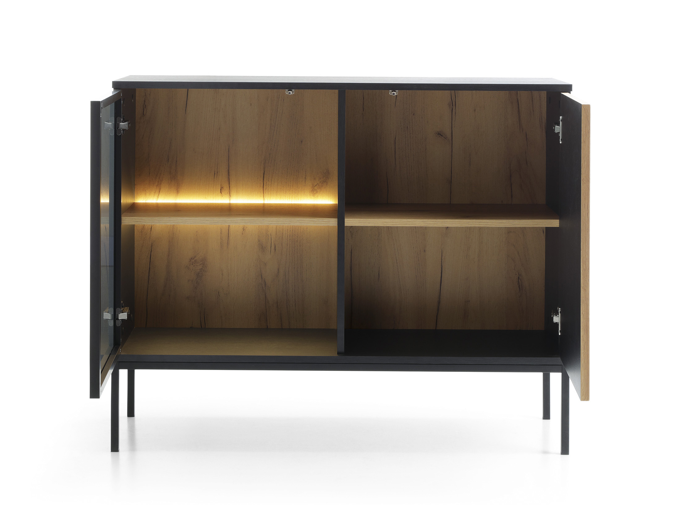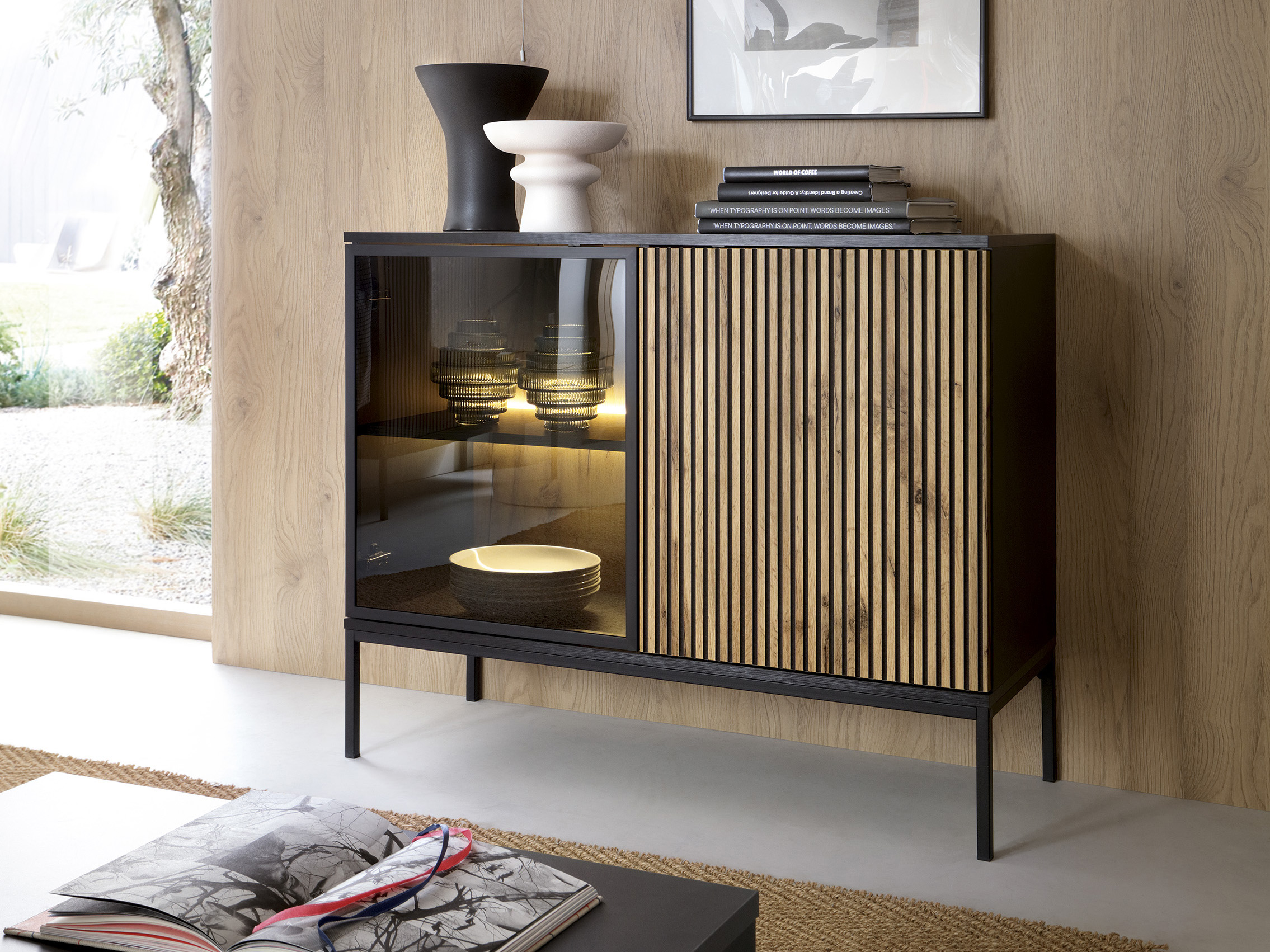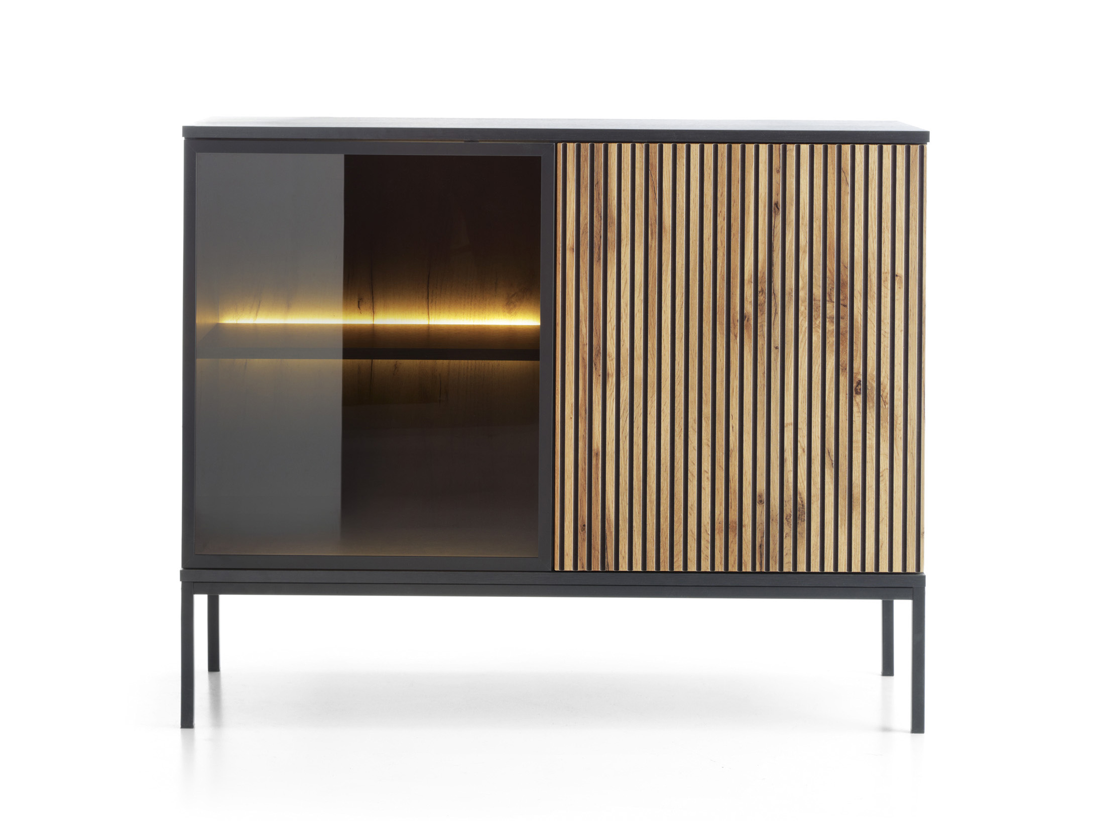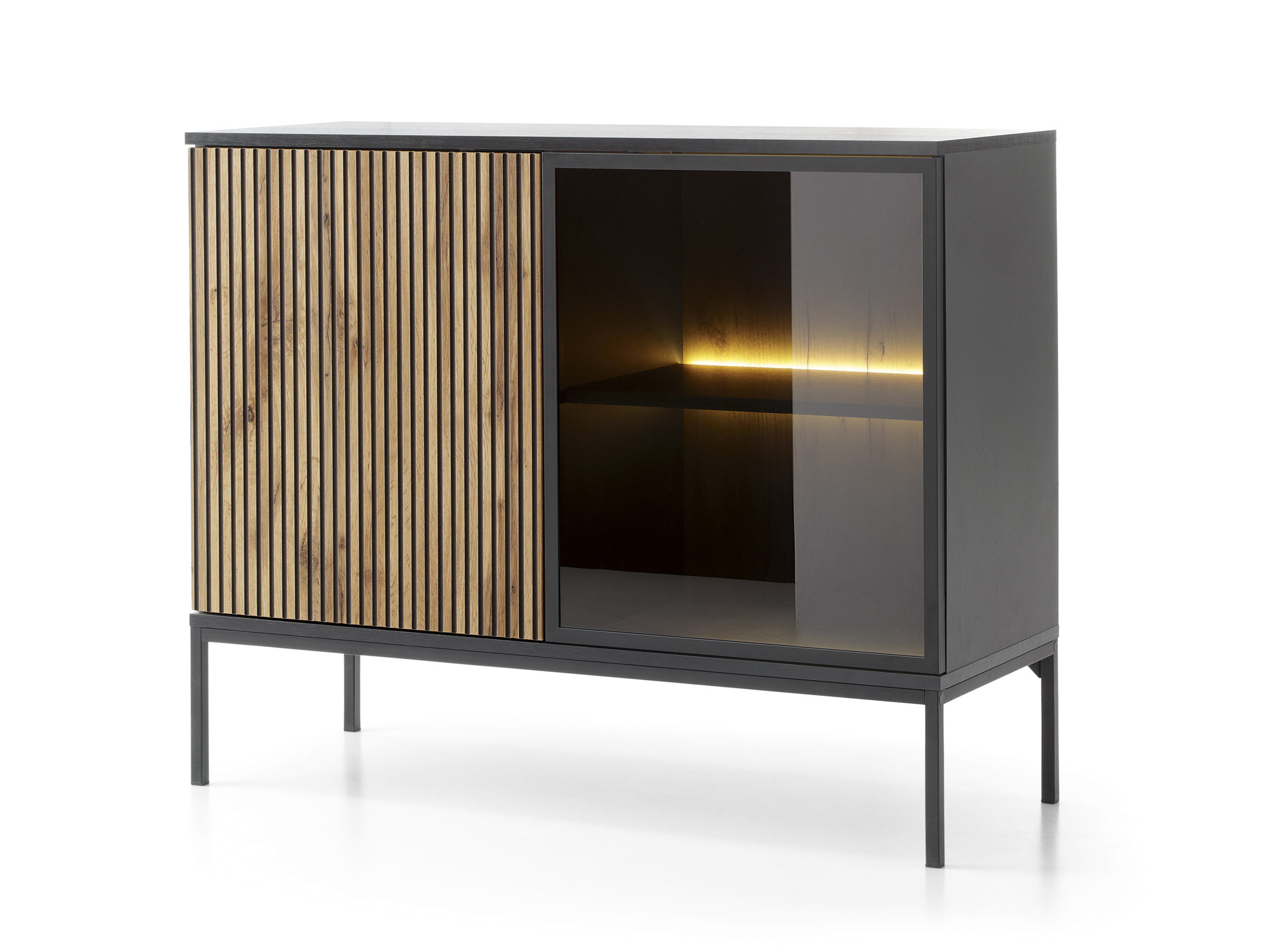 Vitrin Silvano K104 (fekete + wotan tölgy) (LED világítással)