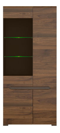 Modern vitrines szekrény, mely felső és alsó részre van osztva. A felső része választófallal van elosztva. A teli ajtós rész 2 teli polcot tartalmaz, és a vitrines ajtós rész 2 üvegezett polcot. Az üvegezett polc energiatakarékos LED világítása is a kínálat része. Az alsó rész 1 teli polcot tartalmaz, mely a szekrény egész szélességeben helyezkedik el.