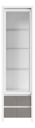 Vitrinek szekrény Kasey REG1W2SL (B/J) (fehér + fényes szürke)
