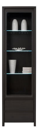 Keskeny, elegáns kirakat üvegajtókkal, három üvegpolccal és két fiókkal az alsó részében. Elragadtatja az egyszerű és mégis elegáns dizájnja. Minden dekorációjának, kiegészítőinek és porcelán díszeinek alkalmas helyet biztosít.