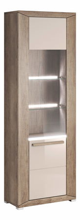 Vitrinek szekrény Laurie Típus 06 P (canyon monument tölgy + fényes homok szürke)