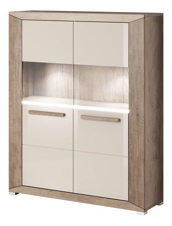 Vitrinek szekrény Laurie Típus 42 (canyon monument tölgy + fényes homok szürke)