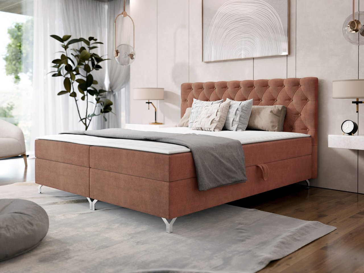 Franciaágy 160 cm Jenaks 2 (terakota) (ágyráccsal és matraccal) (tárolóhellyel)
